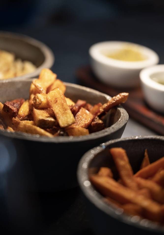 Tous nos accompagnements et sauces sont préparés maison. Nos frites, provenant des champs locaux de Krautergersheim, sont faites sur place et cuites dans de la graisse de bœuf.